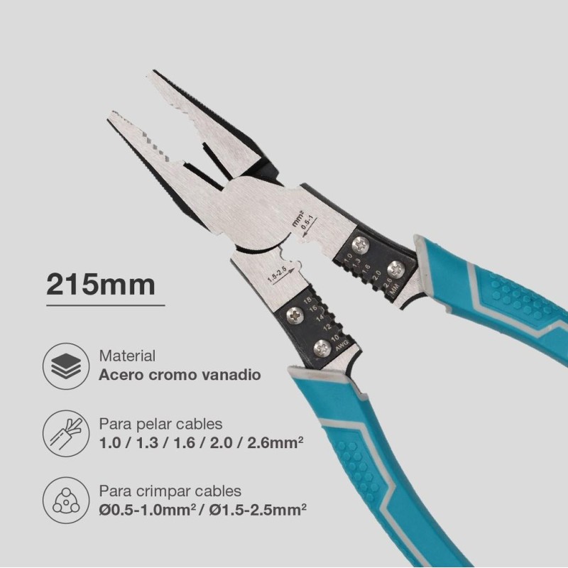 ALICATE UNIVERSAL 215MM CON PELACABLES Y CRIMPADORA