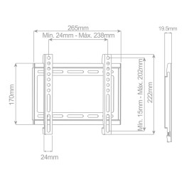 Soporte TV de Pared Fijo de Holmios indicado para las televisiones con pantallas planas, curvas o LCD de entre 23 y 42 pulgadas de hasta 35kg. Este soporte posee un diseño abierto que maximiza el flujo del aire del monitor y un fácil acceso a la parte trasera del televisor. VESA compatible 50x50 / 75x75 / 100x100 / 200x100 / 200x200.